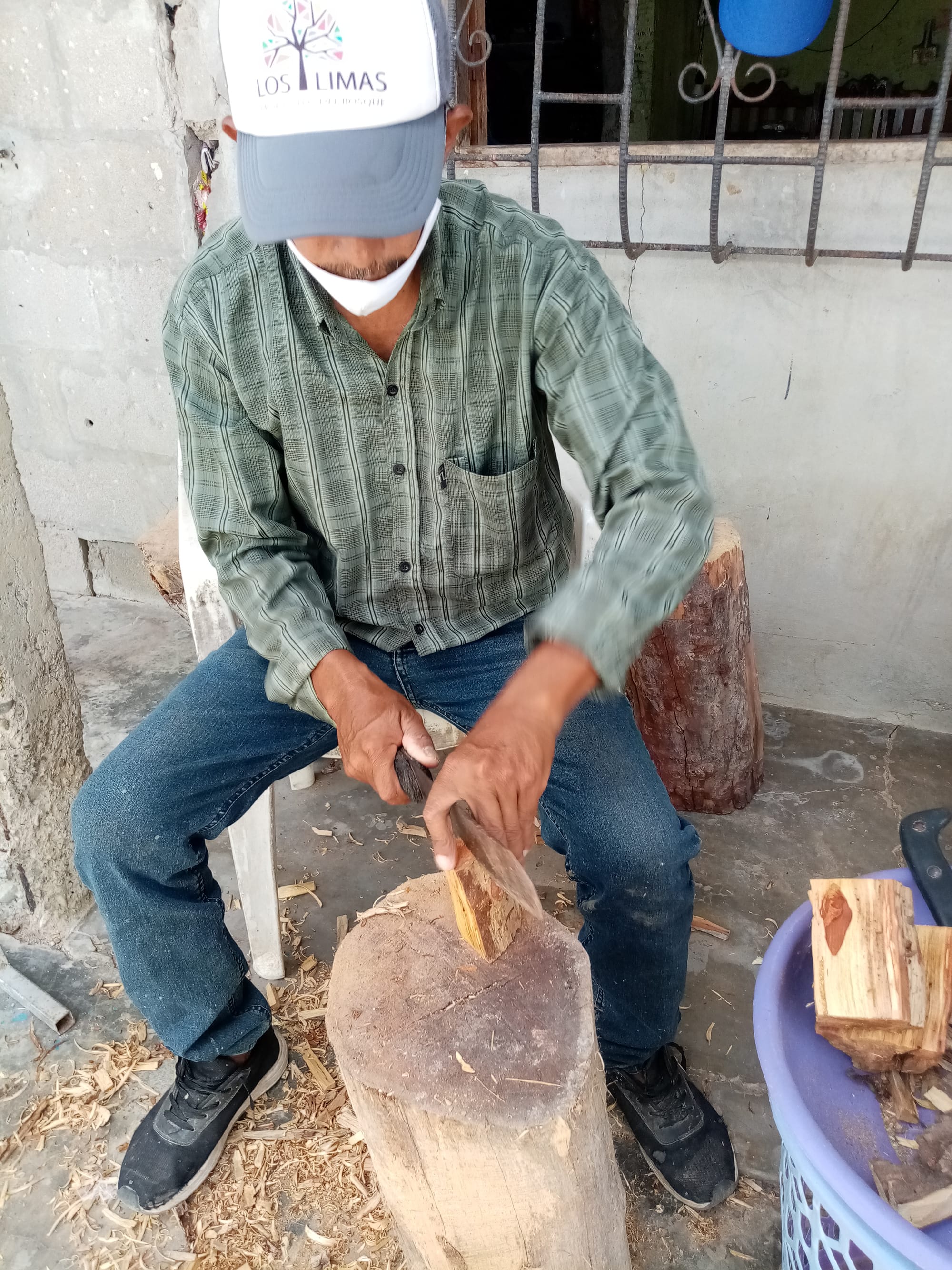 Segundo Lima, emprendedor del palo santo, trabajando en la elaboración para los productos finales. Ayúdanos a impulsar y promover las ventas de los productos elaborados a base del palo santo.